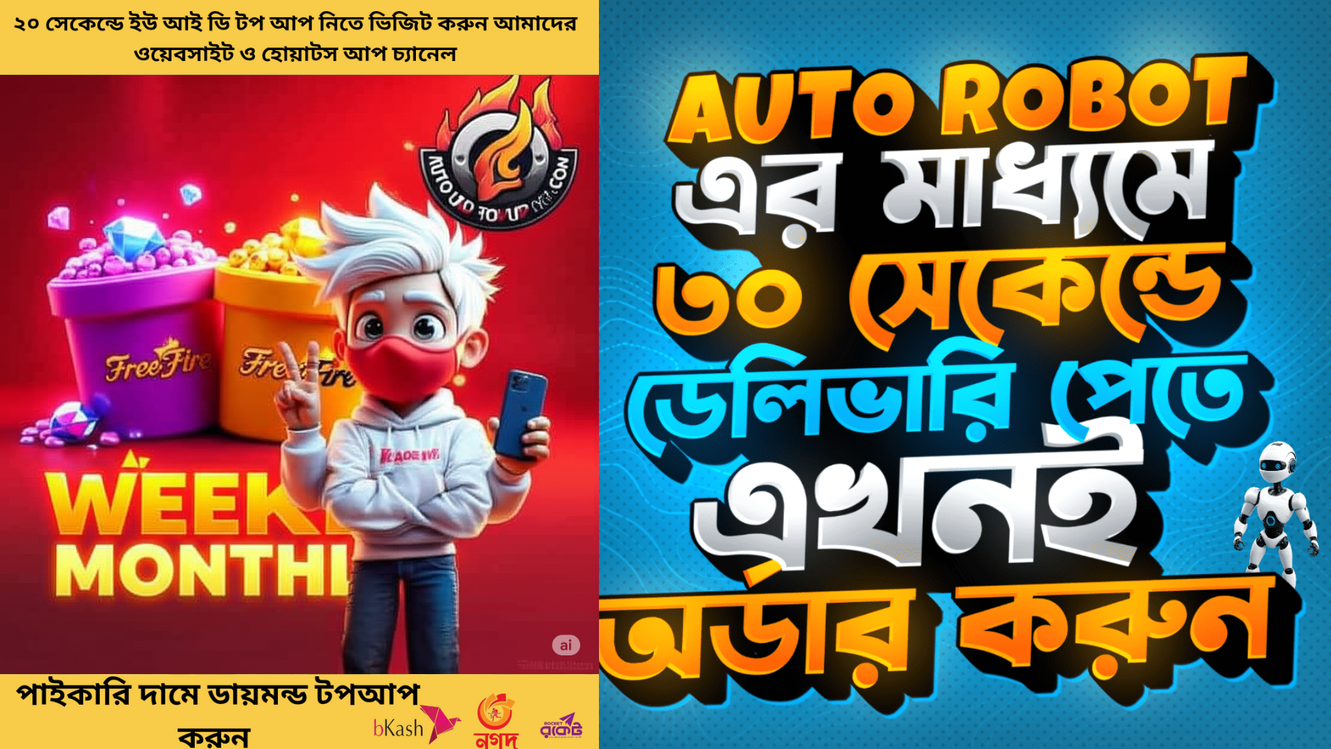 RK BAJAR সাইট রাত দিন ২৪ ঘন্টা চালু থাকে। AI বটের মাধ্যমে মাত্র ৩০ সেকেন্ডে যে কোন অর্ডার ডেলিভারি দেওয়া হয়। বিঃদ্রঃ মা-বাবা বা ফ্যামিলির কারো ফোন থেকে টাকা চুরি করে টপআপ করলে তার বিরুদ্ধে আইনগত ব্যাবস্থা নেয়া হবে...যারা আমাদের অ্যাপ ব্যাবহার করছেন তারা আইডি পাস মনে রাখবেন বা লিখে রাখবেন। অটো অ্যাপ থেকে লগ আউট অপশন রাখা হয়েছে।